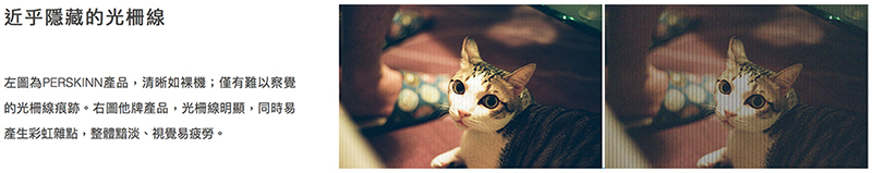 - 透光度高,光柵線條近乎隱形,比一般防窺片瀏覽更舒適